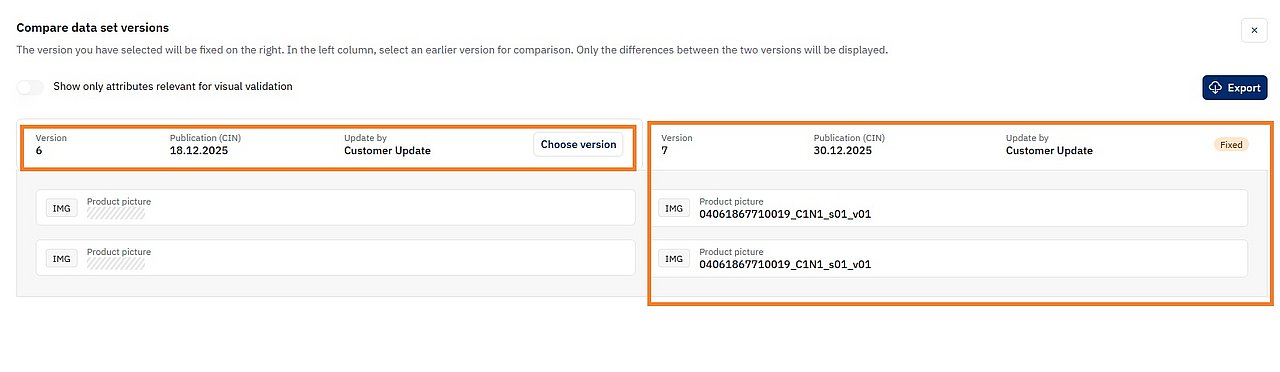 Compare Data Set Versions