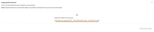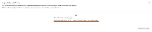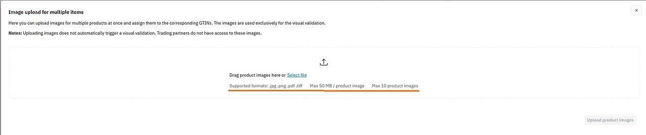 Assign each image to the correct GTIN. Note: Please observe the allowed formats, file size limits and maximum number of images.