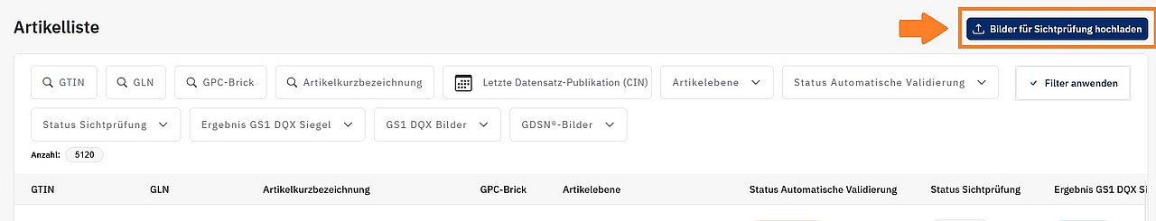 Klicken Sie dann auf „Bilder für Sichtprüfung hochladen“.