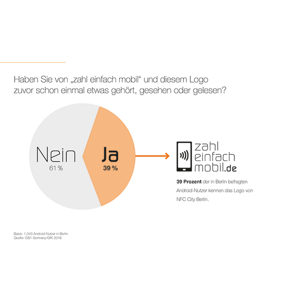 - 39 Prozent der in Berlin befragten Android-Nutzer kennen das Logo von NFC City Berlin. (Quelle: GS1 Germany/GfK)