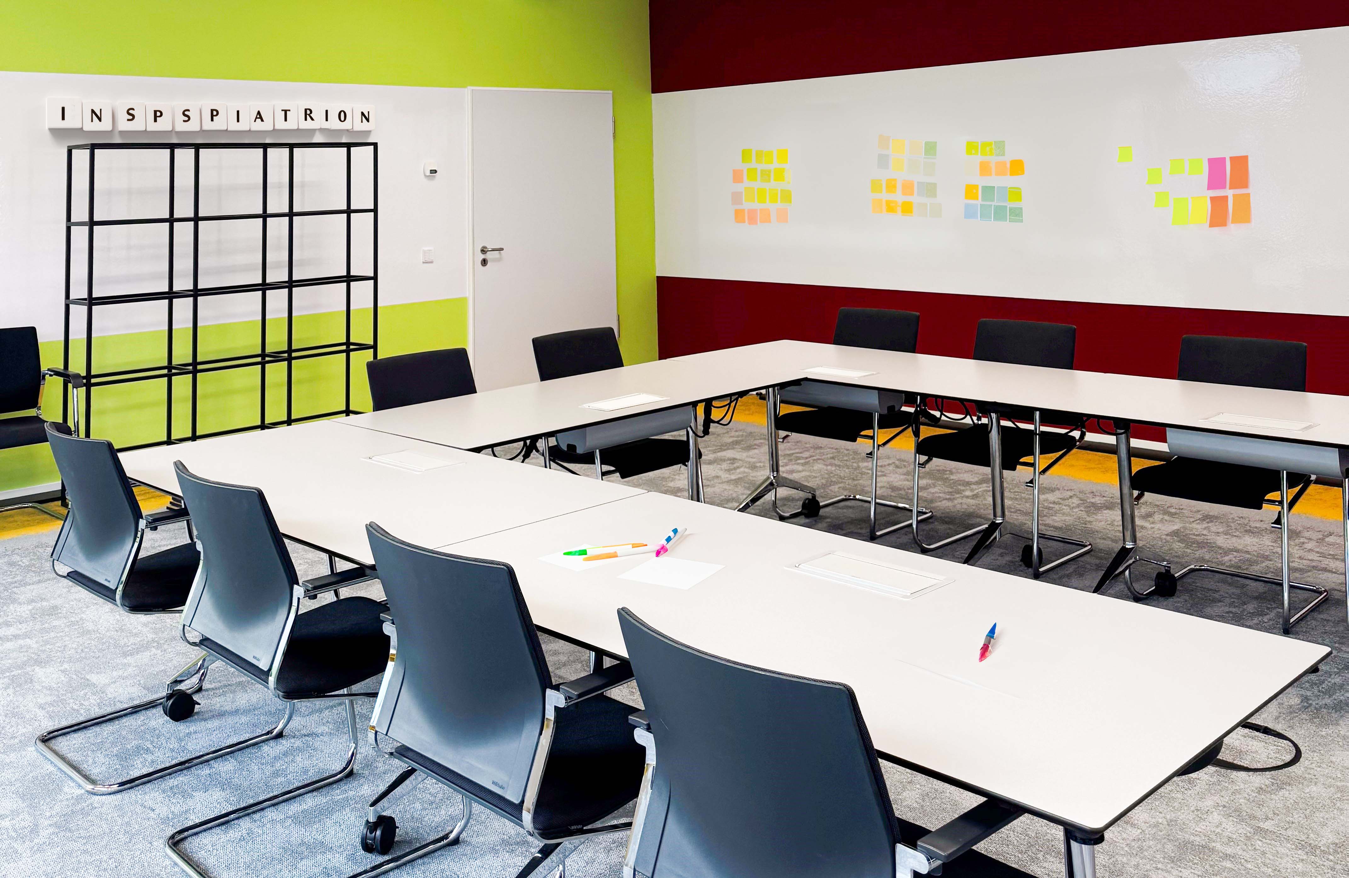 Ein Ort, der inspiriert: mit beschreibbaren Wänden, frischen Farben und neuem Bodenbelag bietet der neueste Raum im GS1 Knowledge Center die perfekte Umgebung für Workshops, Trainings und kreative Meetings. Als Teil des Innovation Space direkt neben Innovation Center und Lounge gelegen, bietet der multifunktionaler Raum Denkflächen, um Ideen sichtbar zu machen und Farben, die den Geist öffnen und Kreativität fördern. Alle Innovationsräume sind einzeln oder im Paket buchbar – je nach Bedarf.